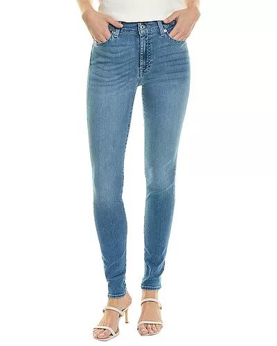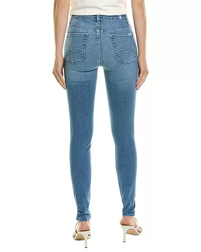 - High Rise Skinny in light indigo static with belt loops, whiskering and fading details, and classic five-pocket styling