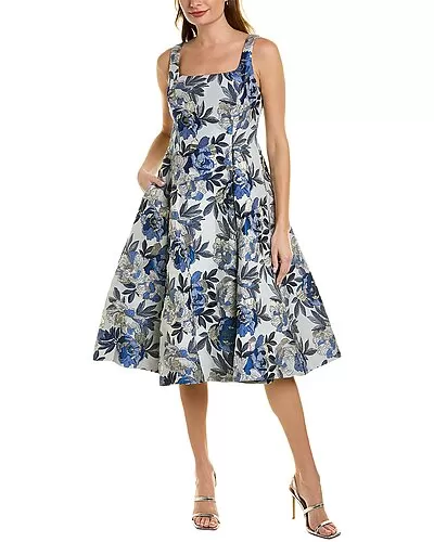 - Design details: square neck, pleated skirt, and side seam pockets