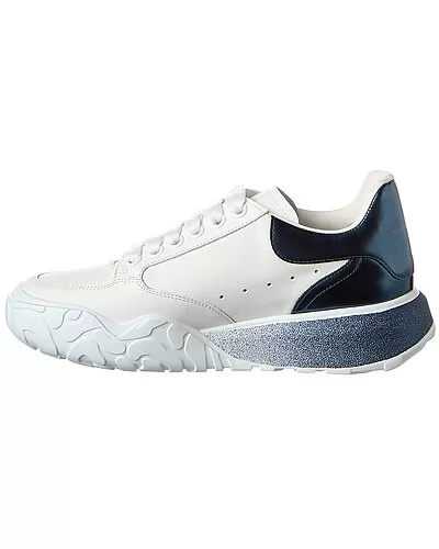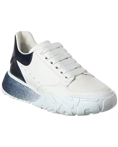 - New Court Leather Sneaker in white and navy leather with textured sole with glitter detailing