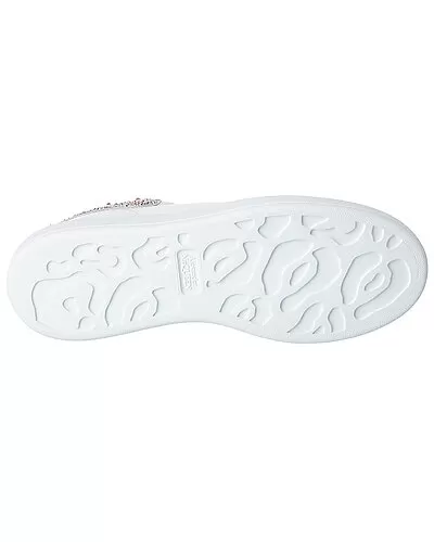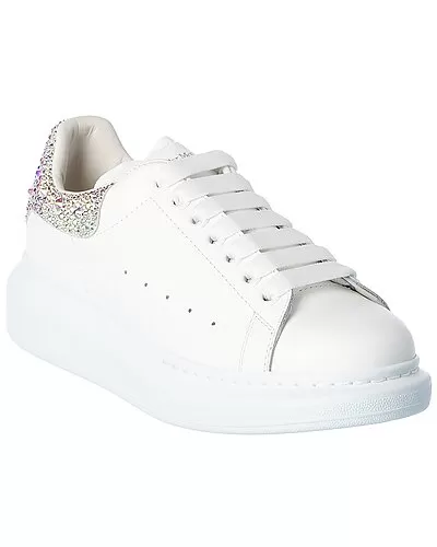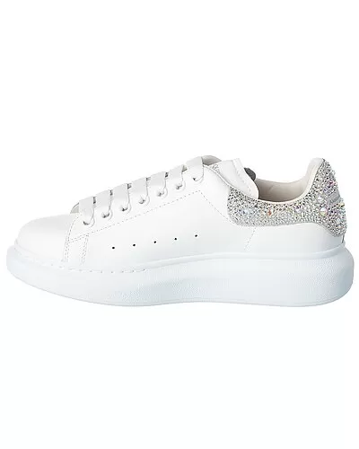 - Oversized Leather & Crystal Sneaker in white leather with rhinestone encrusted heel
