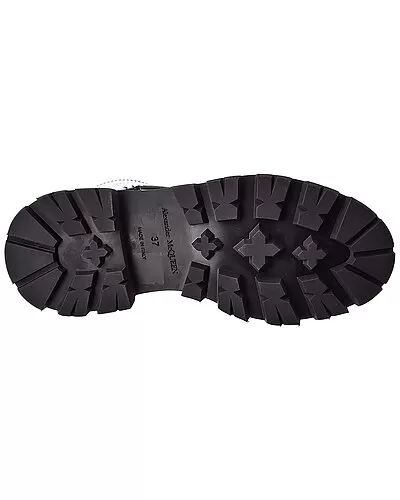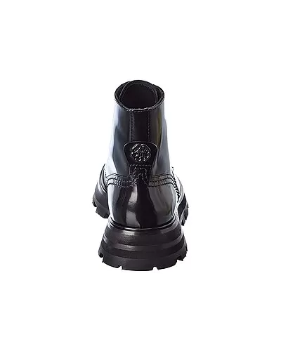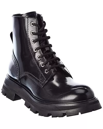 - Wander Leather Bootie in black leather and silver-tone hardware with logo accent