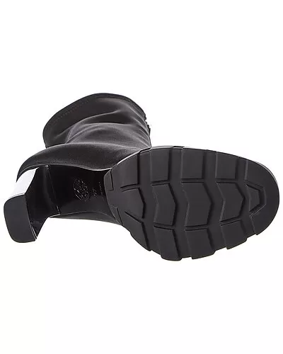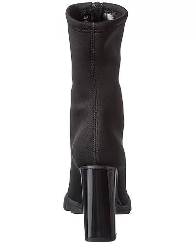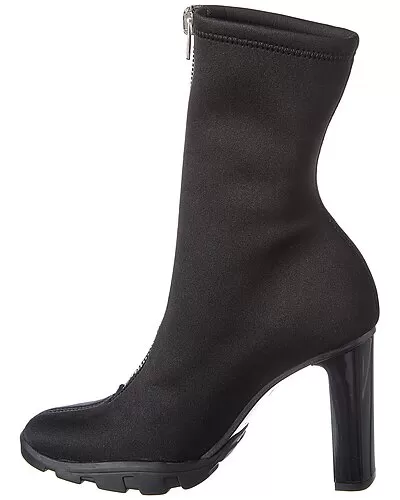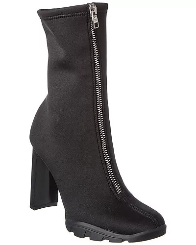 - Zip-Up Scuba Bootie in black scuba fabric and silver-tone hardware