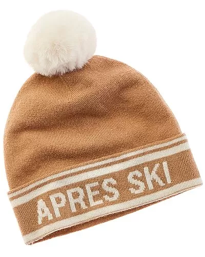 - Apres Ski Pom Hat in camel multicolor with removable faux fur pom