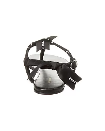 - Color/material: black satin and leather