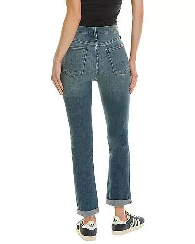 - Blair High-Rise Straight Crop in penny with belt loops, whiskering and fading details, rolled hem, and classic five-pocket styling