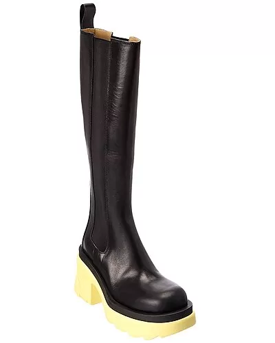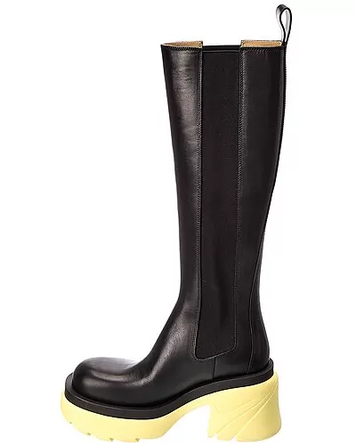 - Flash Leather Bootie in black/yellow leather with elasticized gores at sides and pull-on tab at back