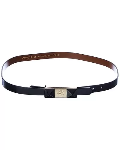 - Lea Soave Leather Belt in black leather with gold-tone hardware and pin buckle closure