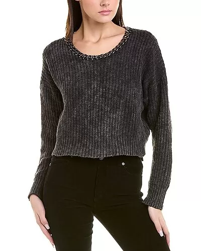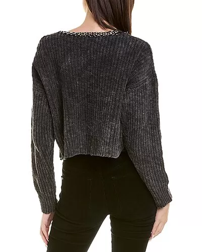- Chain-link Sweater in black with cropped rib design and dropped-shoulder sleeves