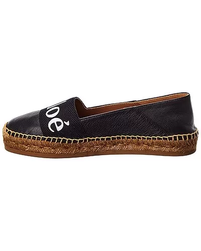 - Woody Leather Espadrille in black leather with canvas logo band