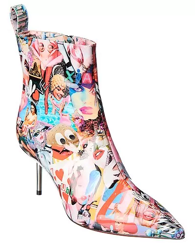 - Epic 70 Patent Bootie in white multicolor patent leather and silver-tone hardware with pointy-toe and pin heel