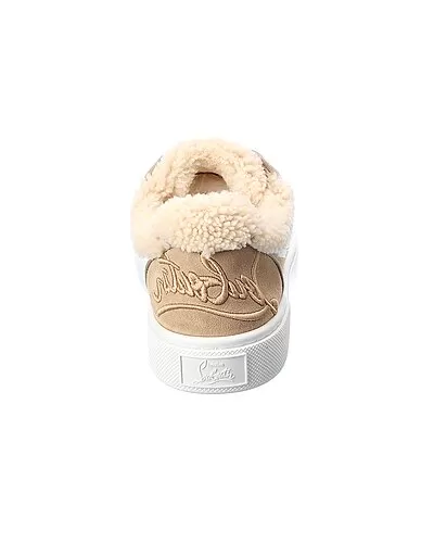 - Fun Vieirissima Suede & Shearling Sneaker in beige suede and shearling with logo embroidery