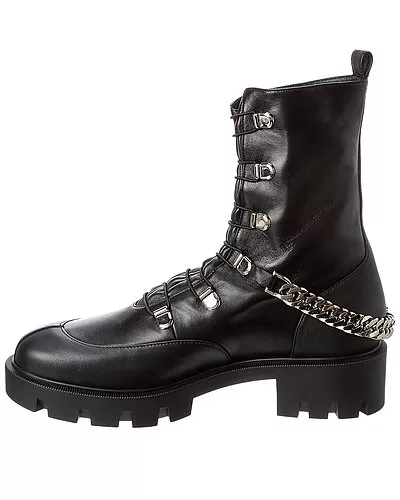 - Horse Leather Bootie in black leather and silver-tone hardware with chain accent