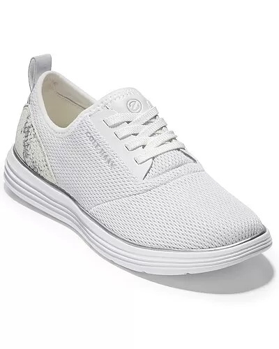 - Grand Sport Journey Sneaker in vintage optic white knit textile and leather