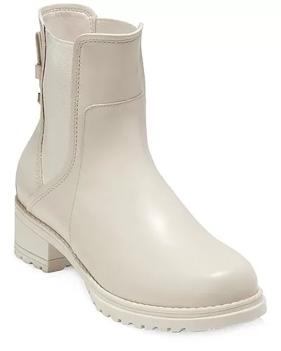 - Camea Weatherproof Leather Chelsea Bootie in ivory leather and light gold-tone hardware