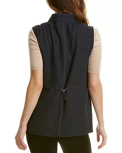 - Edison Wool-Blend Vest in ink with quilted face, contrast flannel back, dual side on-seam pockets, and drawcord waist