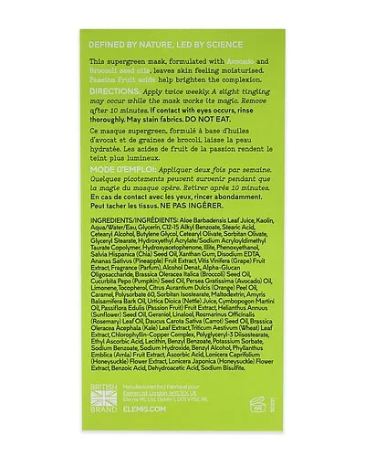 - Active ingredients: Aloe Barbadensis Leaf Juice, Kaolin, Aqua/Water/Eau, Glycerin, C12-15 Alkyl Benzoate, Stearic Acid, Cetearyl Alcohol, Butylene Glycol, Cetearyl Olivate, Sorbitan Olivate, Glyceryl Stearate, Hydroxyethyl Acrylate/Sodium Acryloyldimethyl Taurate Copolymer, Hydroxyacetophenone, Illite, Phenoxyethanol, Salvia Hispanica Seed Oil, Xanthan Gum, Disodium Edta, Ananas Sativus (Pineapple) Fruit Extract.