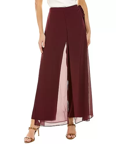 - Eva Overlay Pant in cordovan with wraparound layered design and self-tie sash