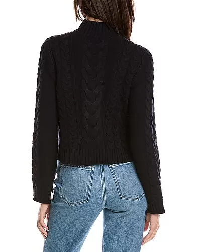 - Ella Crop Cable Wool & Cashmere-Blend Sweater in french navy with high-neck, cable knit, ribbed trim, furled cuffs and cropped hem with side slits