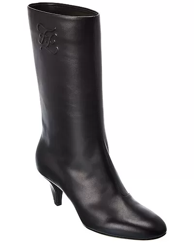 - Karligraphy Leather Boot in black leather with embossed logo accent