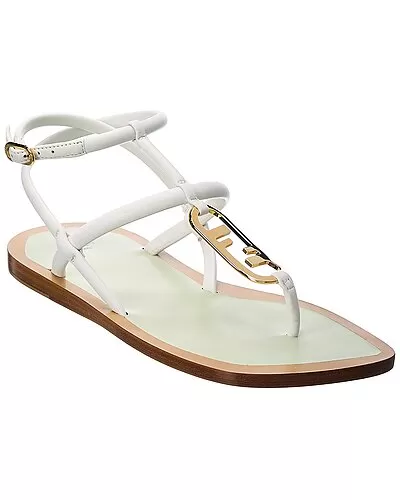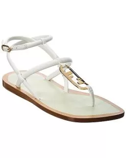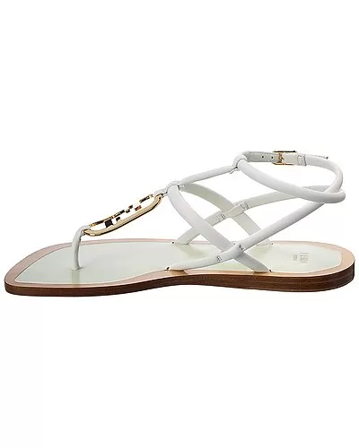 - O’Lock Leather Sandal in white leather and gold-tone hardware with logo accent