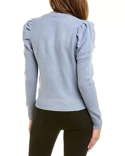 - Design details: crewneck, floral embroidery, pearl embellishments, puff shoulders and ribbed trim