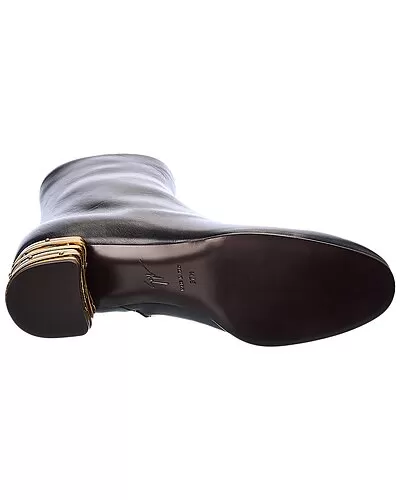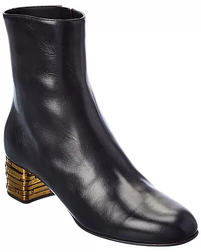 - Splorcia 40 Leather Bootie in black leather and gold-tone hardware with textured metal heel