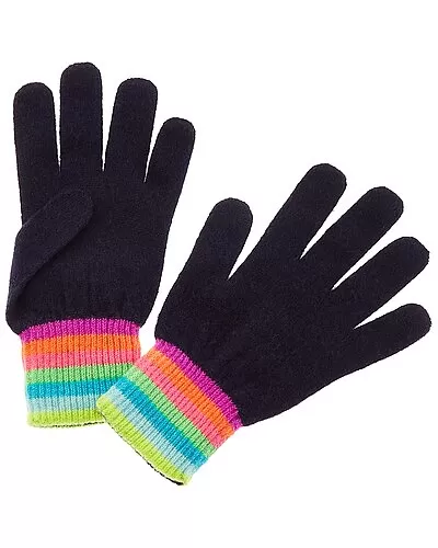 - Gradient Stripe Cashmere Gloves in navy multicolor with ribbed cuffs