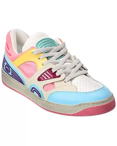 - Basket Demetra Sneaker in pink multicolor Demetra faux leather and padded mesh with distressed design, perforated detailing and logo accent