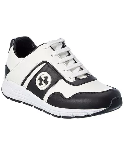 - GG Leather Sneaker in white and black leather with interlocking G logo accent