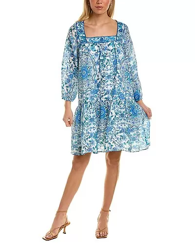 - Leilani Linen Mini Dress in multicolor with square neck and elasticized cuffs