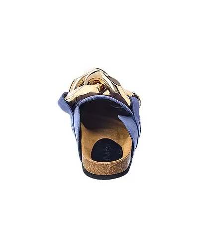 - Color/material: blue suede