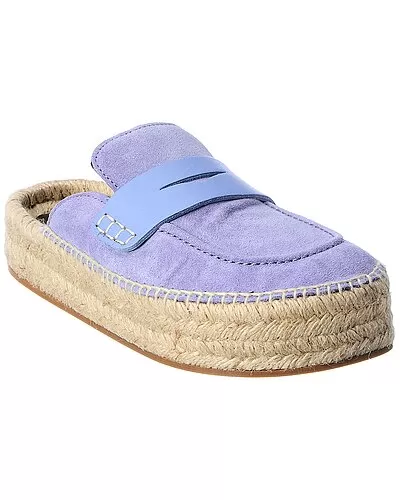 - Color/material: light pastel purple suede