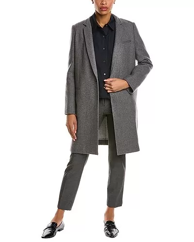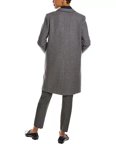 - Marabela Wool-Blend Coat in nickel melange with floral jacquard design, notch lapel, dual front pockets