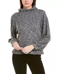 - Open Back Top in grey with funnel neck and balloon sleeves
