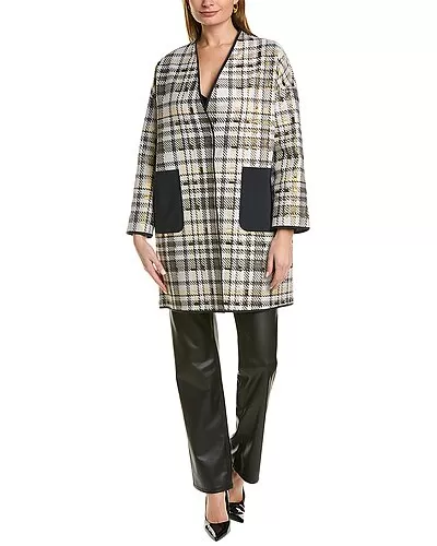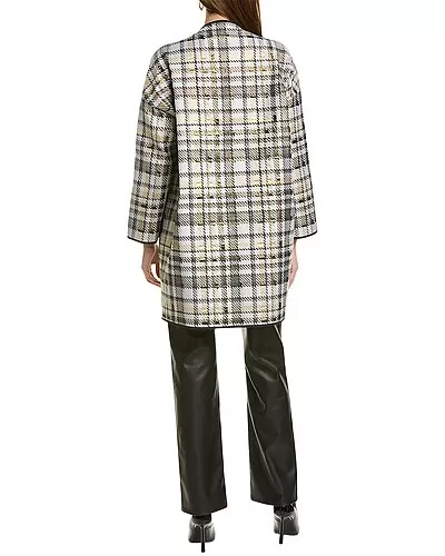 - Oversized Coat in starlight multicolor with metallic jacquard design, and contrast dual front pockets