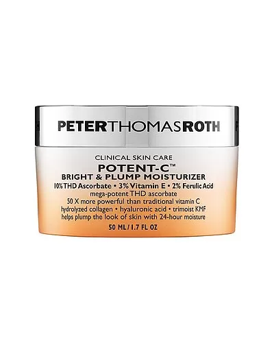 - Potent-C Bright & Plump Moisturizer unleashes the strength of THD Ascorbate, an ultra-stable ingredient 50 X more powerful than traditional Vitamin C. Packed with a concentration of 10% THD Ascorbate, this potent moisturizer is amplified by 3% Vitamin E and 2% Ferulic Acid to provide complete anti-aging, firming and brightening benefits, and improve the look of uneven skin tone and texture.