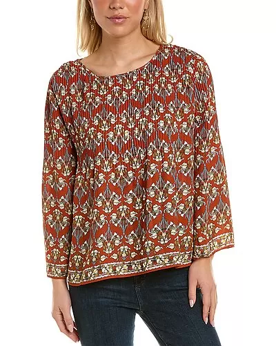 - Pleated Blouse in auburn med avian with bell sleeves