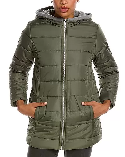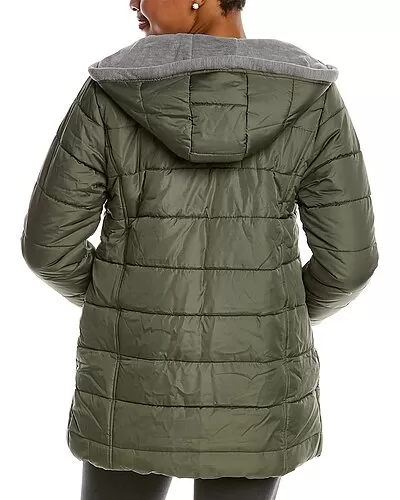 - Quilted Hooded Puffer Zip-Up Jacket in safari with quilted design, hooded back and dual front pockets