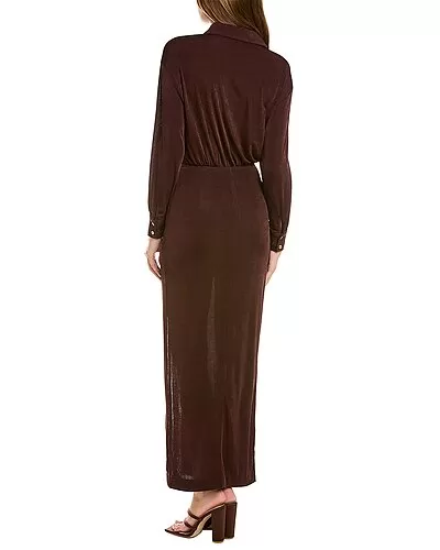 - Rae Maxi Dress in cranberry with velvet design, blouson sleeves, and high slit at left hem