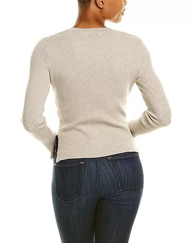 - Ribbed Henley V-Neck Sweater in ash with mixed rib design and vented hem and cuffs