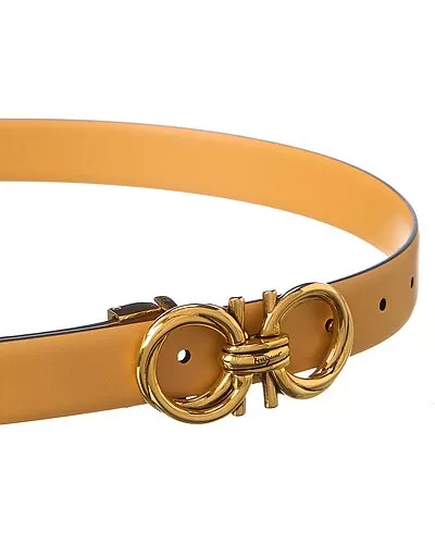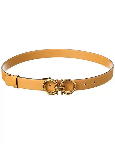 - Gancini Adjustable Leather Belt in langur yellow leather and gold-tone hardware, Gancini details and pin buckle closure