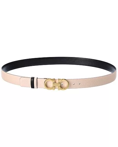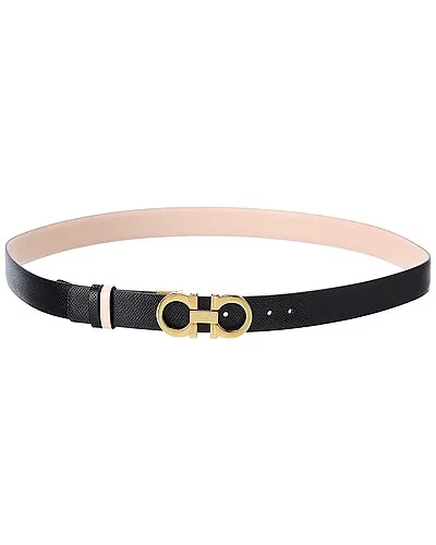 - Design details: gold-tone hardware, Gancini details, pin buckle closure