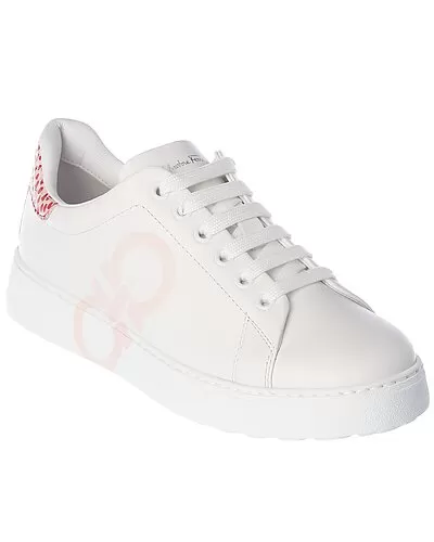 - Number Leather Sneaker in white and Nylund pink leather with Gancini accent