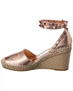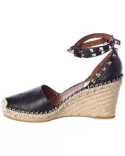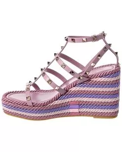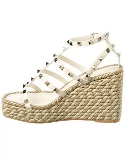 Valentino Rockstud Caged 95 Leather Ankle Strap Wedge Sandal Women