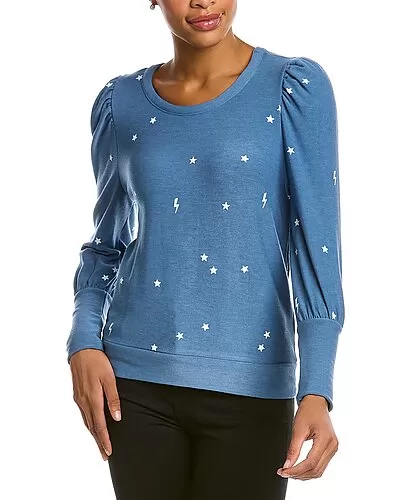 - Starry Bolts Pullover in St. Croix lake blue with crewneck, puff shoulders and allover graphic print