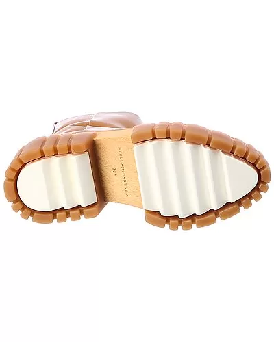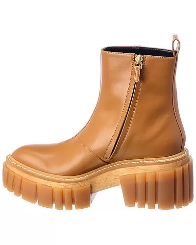 - Emilie Platform Boot in brown vegan leather and gold-tone hardware with wood base