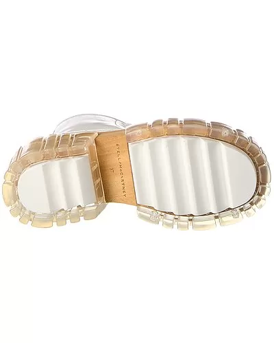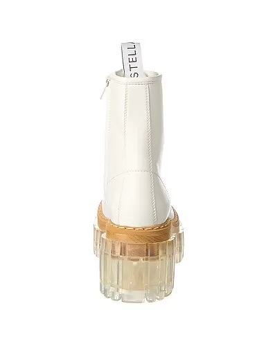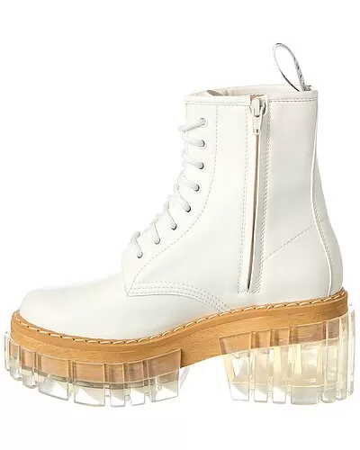 - Platform Boot in white vegan leather with wood base and transparent sole