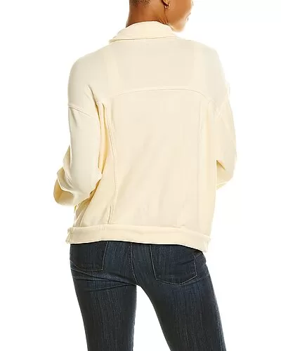 - Supersoft Fleece Denim Style Jacket in buttercream with spread collar, dropped-shoulder sleeves, button cuffs, and dual chest pockets