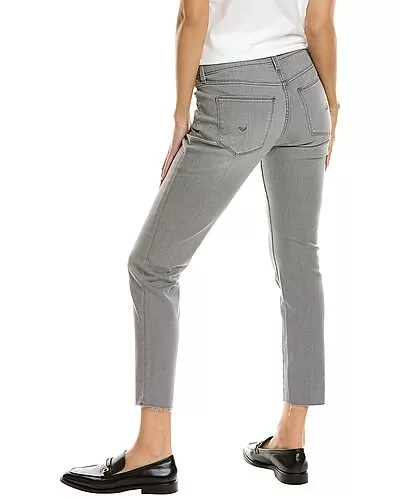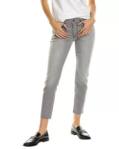 - Natalie Mid-Rise Super Skinny Ankle Cut Jean in grey with fading and whiskering wash, cutoff hem, classic five-pocket style, and belt loops