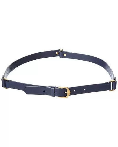 - Leather Belt in navy leather with gold-tone hardware and pin buckle closure